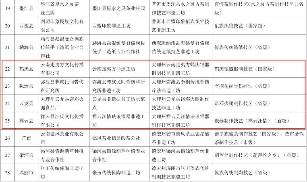 关于云南第一批省级非遗工坊推荐名单的公示