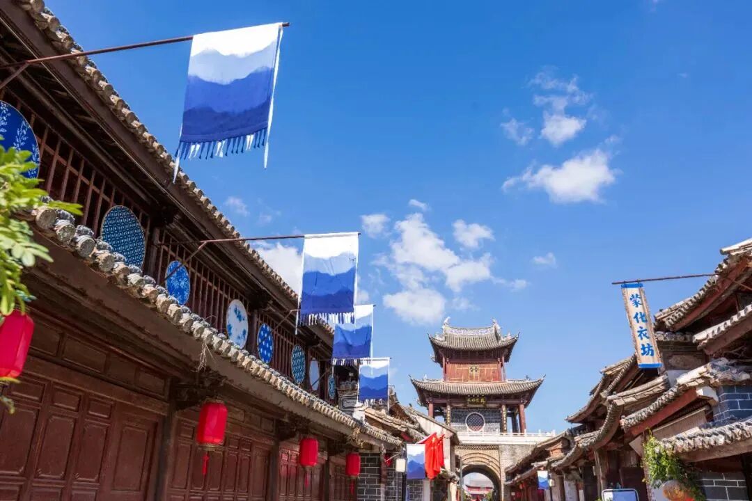 巍山古城特色小镇,位于大理白族自治州巍山县南诏镇,这里素有“中国民间扎染艺术之乡”的美誉,传承千年的南诏彝族手工扎染工艺独特、制作精美、图案新颖。