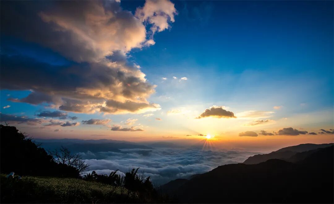 新平哀牢山“云海日出”景观堪称“滇中云海一绝”。每年的11月中下旬至次年的3月,众多游客及摄影爱好者齐聚耀南村云海日出观景台,约会哀牢山的云海、日出、光影、红霞……