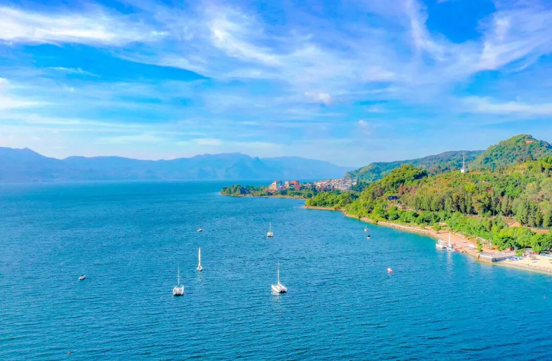 碧海蓝天,白帆点点,坐拥抚仙湖最美沙滩的高湖帆艇基地位于抚仙湖明星鱼洞景区内,这里的沙滩洁白细腻,湖水晶莹剔透、清澈见底,游客可以乘坐帆船游览观光,也可以扬帆起航,体验乘风破浪的快感。