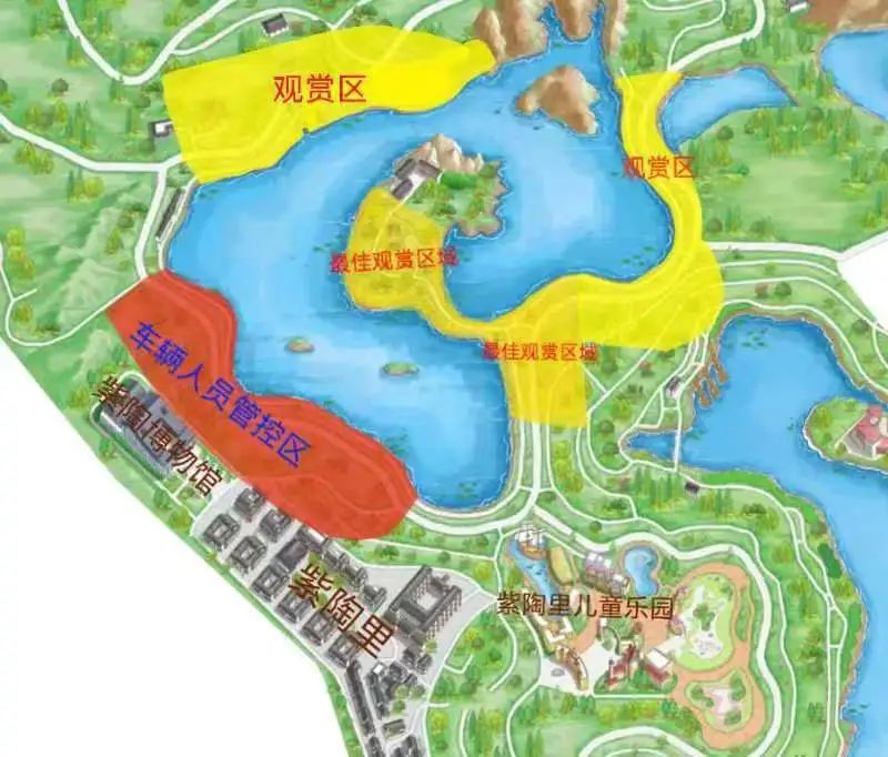 车辆请停放在周边停车位和停车场,另外可提前从五龙湖公园蚁工坊方向入口处单向驶入公园顺序停放(入口至中央公园路段),公园内停放的车辆需从中央公园或紫陶园区出口驶离;演出核心路段将实行交通管制禁止车辆通行,请听从现场工作人员指挥。