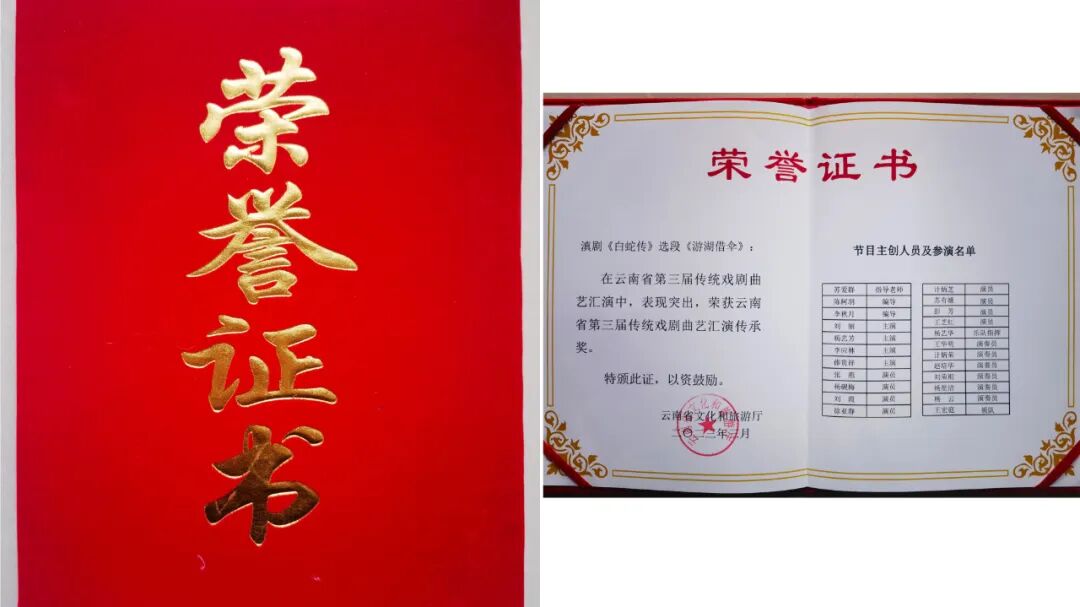 日前,由云南省文化和旅游厅、昆明市人民政府主办的云南省第三届传统戏剧曲艺汇演在昆明落下帷幕,由临沧市文化和旅游局、临沧市非遗中心、临沧市文化馆选送的滇剧《白蛇传》选段《游湖借伞》作品荣获云南省第三届传统戏剧曲艺汇演传承奖(金奖)。