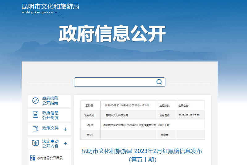 2月,昆明10家旅行社、2名导游登上旅游红榜,3家旅行社因侵害旅游者合法权益受到行政机关罚款以上处罚,14家旅行社同一个月内因负主要责任而产生有效投诉2次及以上并被省级列入重点监管名单。