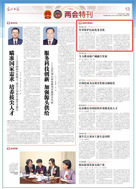 “怒族人口少,只有语言没有文字,历史文化都靠口耳相传。我建议利用音像视频记录人口较少民族的口头文化,通过新媒体创新民族文化传播方式,推动民族文化与乡村旅游融合发展。”郁伍林代表说。