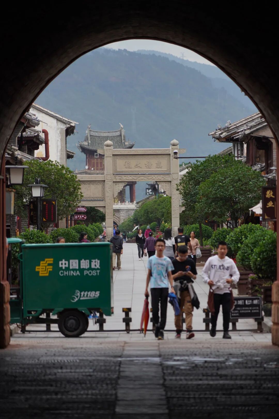 沿着门洞缓缓穿过巍然屹立的拱辰楼,仿佛穿越了时空。成片的明清建筑从泛黄的旧照中走出,土木结构、坡顶青瓦屋面的两层古建临街坐落,行走其间,让人不由放慢了脚步。