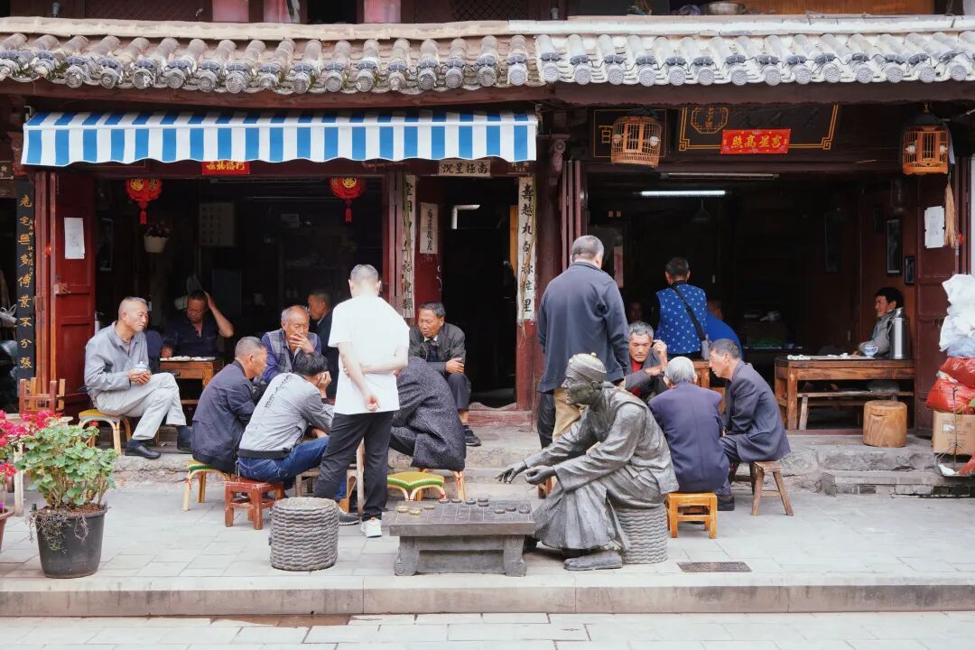 来到古建前,老者驻足寒暄,街坊四邻、临街店主聚在一起,或下棋、品茶,或逗鸟养花,没有人需要担心肆意玩闹的孩童遭遇车水马龙……是这里的人让生活慢了下来。
