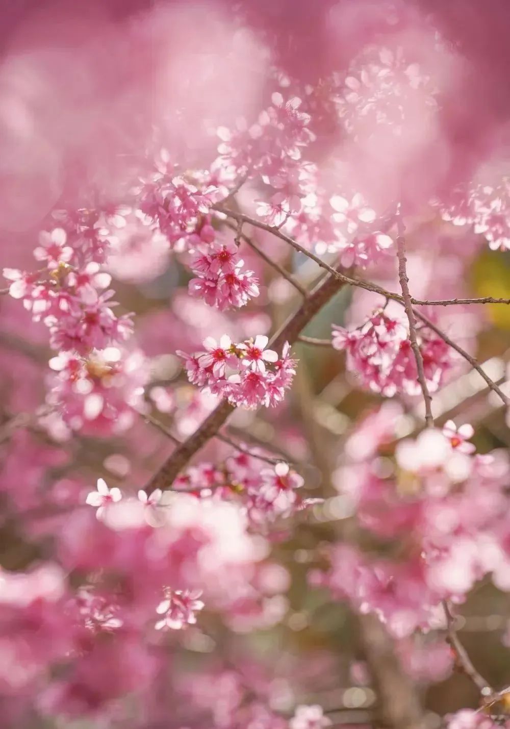 每年12月,护国乡樱花正灿。驾车沿路而上,千亩原始森林与樱花的完美结合,粗犷的山林如坚实的臂膀,把粉色的樱花衬托得绚丽非凡。整座山脉被绿色包围、粉色点缀,俨然一幅油画。