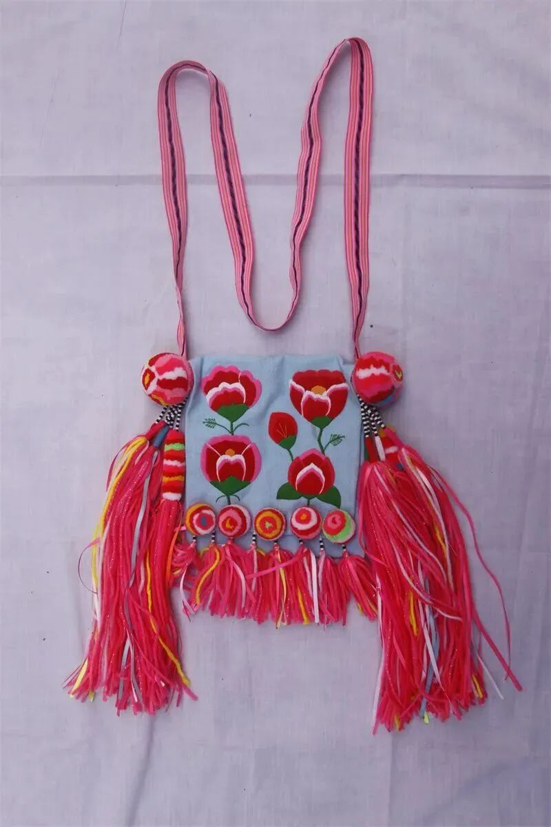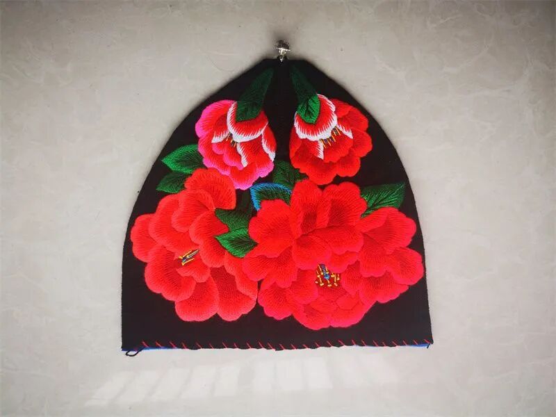 新娘服饰则加上红头巾,并在腰带上再加上更多的毛线。成年妇女均配有绣花包和坎肩。绣花包用蓝色布料缝制而成,包盖上绣有各种花鸟图案,配以各种颜色的毛线。坎肩用黑色布料缝制,表面绣有各种花鸟图案。