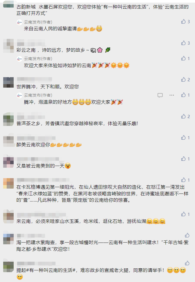 “云南超美的,我爱云南”“还没有去过,一定要去一次”