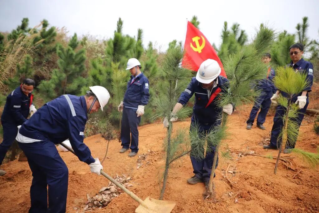 开展“党建带团建 播种共青林”植树节主题活动,为共建绿色矿山、擦亮花园式工厂名片添新添绿,共种植60棵樱花树。(张绍强 王均鑫)