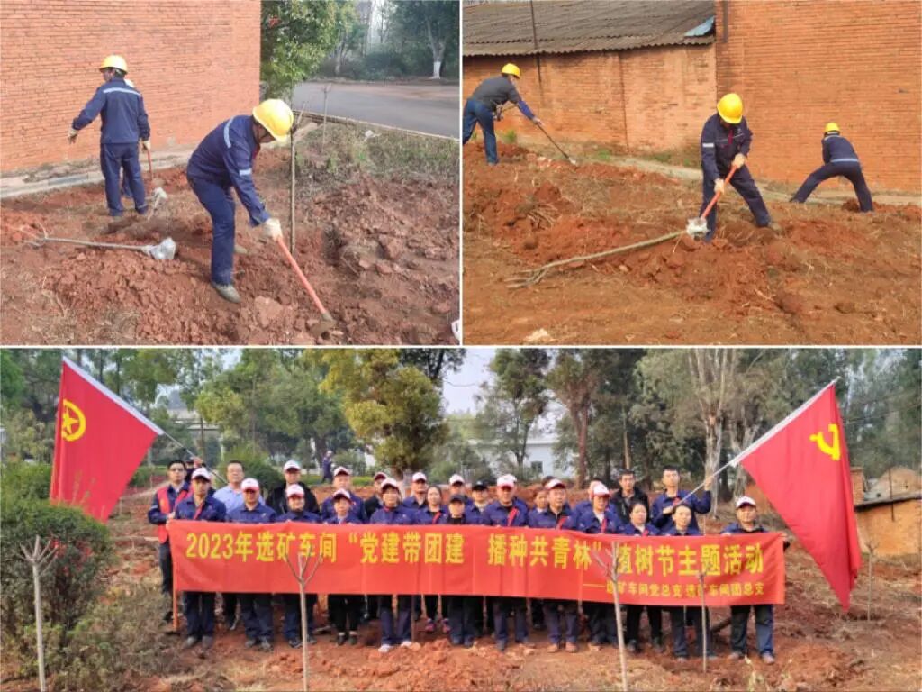 综合车间党支部、党群党支部和生产经营党支部在象冲尾矿库联合开展“深学笃行二十大 植树添绿促发展”主题党日活动。大家按照分工认领责任区,挥汗如雨地扶苗、培土、围堰、浇灌,共植种200余棵树苗。植树活动后,党团员们合唱红色歌曲《火苗》,朗诵诗歌《春种》,表演舞蹈《爱你》,进行了党建和安全知识互动游戏。(陈航 庞许锟)
