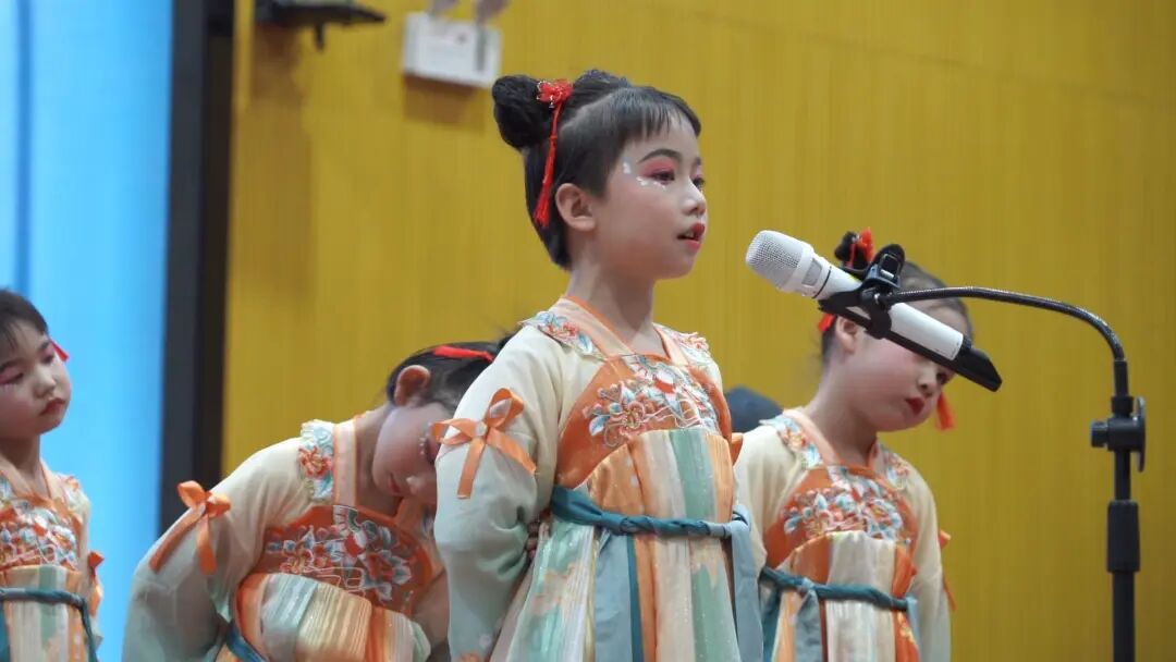 诗中有画、画中有诗。别看孩子们年纪小,表演起来个个神采奕奕。诗朗诵、情景剧、绘本剧、诗歌诵唱等形式多样的节目,内容丰富,小朋友们用洪亮的童声吟诵,传承着国学经典,传递着诗词神韵,他们稚嫩的面容表情、投入的朗诵、丰厚的情感,赢得了阵阵掌声。