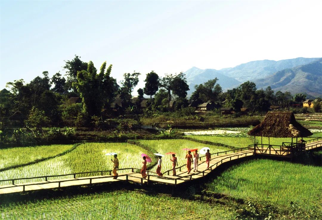 被誉为“中缅第一寨”的勐景来,位于西双版纳州勐海县打洛镇,清澈的打洛江绕村而过,形成一条天然的国境线。勐景来是一个原汁原味的傣族村寨,保存完好的傣族干栏式建筑、迷人的热带田园风光和淳朴的傣家风情,让游人能够在这里体验傣家人的原味生活。