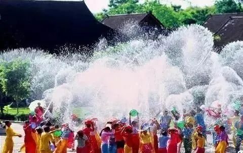 泼水节期间,傣族男女老少穿上节日盛装,挑着清水,先到佛寺浴佛,然后就开始互相泼水,你泼我,我泼你,一朵朱水花在空中绽开,象征着吉祥、幸福、健康,青年手里晶莹剔透的水珠,还象征着爱情的甜蜜和美好。到处是水的洗礼、水的祝福、水的欢歌。朵朵水花串串笑,泼水节成了欢乐的海洋。