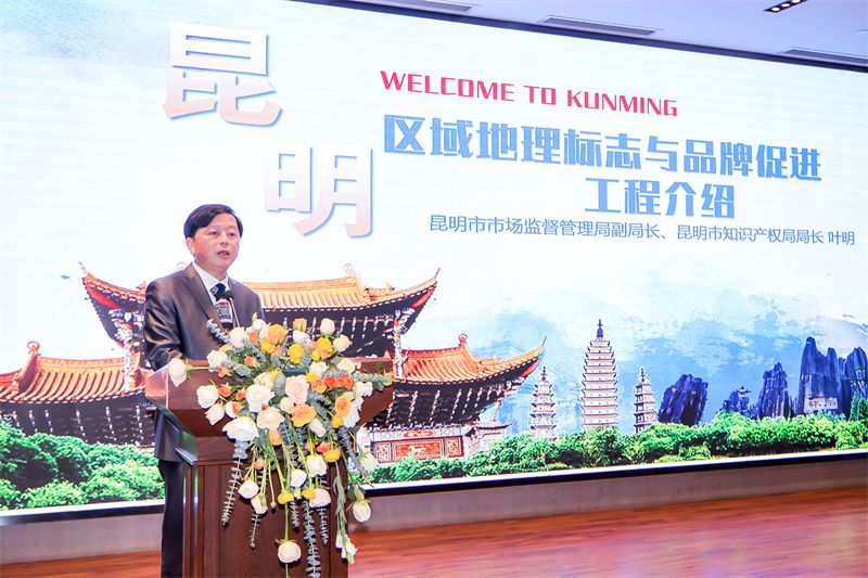 品牌是一个国家竞争力的综合体现,也是参与全球竞争的重要资源。会上,昆明市市场监督管理局副局长、昆明市知识产权局局长叶明对昆明市区域地理标志与品牌促进工程进行了简要汇报,他从云南地理标志发展中的四大机遇等方面进行了介绍,并指出要围绕地理标志标准赋能等四个赋能开展地理标志品牌建设工作。