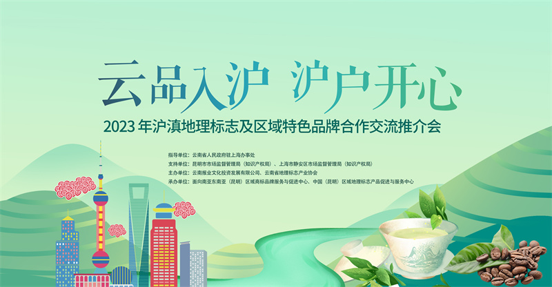 饮云茶、赏云花、品云果、喝云咖……3月17日下午,由云南省人民政府驻上海办事处指导,昆明市市场监督管理局(知识产权局)、上海市静安区市场监督管理局(知识产权局)支持,云南报业文化投资发展有限公司、云南省地理标志产业协会主办的2023年沪滇地理标志及区域特色品牌合作交流推介会在上海云南大厦举办,百余家具有云南特色的区域特色品牌生产企业带着琳琅满目的云南产品入驻大厦。