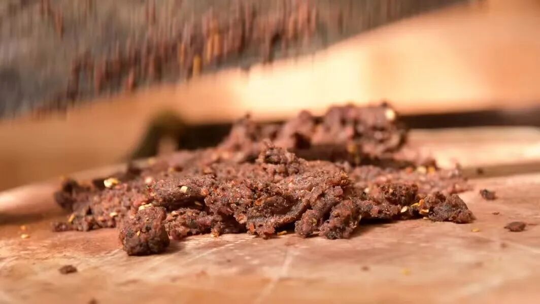 傣族“牛生”的烹饪过程并不复杂,首先要精选本地小黄牛瘦肉切丁,放到盛有火红的木炭的土陶罐里迅速搅拌,直至牛肉丁烤熟。再用同样的方法,把八角、野花椒、干辣椒、姜片等佐料烘至散发出焦香后舂细,将烤熟的牛肉丁剁碎成末,撒上盐巴,放入煮好的五加叶汁水里,搅拌均匀,这道色香味俱全的美食就完成了。