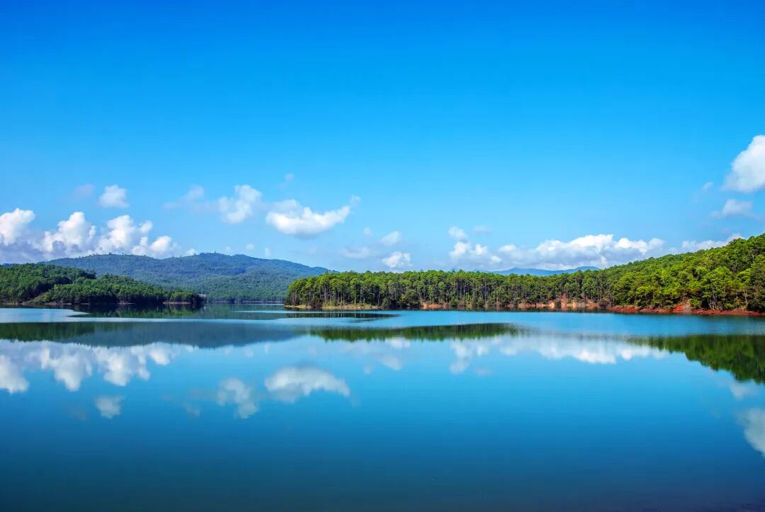 清澈的湖水,在轻舞的风中荡起层层微波。随着夕阳跌落湖面,鱼儿一跃将夕阳打碎化作片片霞光,几只飞鸟从湖畔芦苇间猛然飞起,一溜烟便不见了踪迹。唯有那些闲情垂钓的人们与青山白云的倒影,还在诉说着这片湖光山色的恬静与美好。