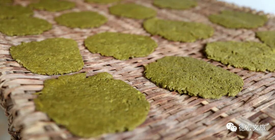 竹筒开封后,把茶叶取出,经过精心挑选,上好的酸茶会呈金黄色,发酵后的茶叶放在石臼中,用传统的脚碓舂烂,揉成小团,压成饼状,晒两天左右,剪成小块,接着再暴晒五天就能得到成品。