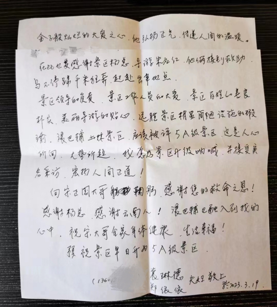 袁琳德手写下这封信