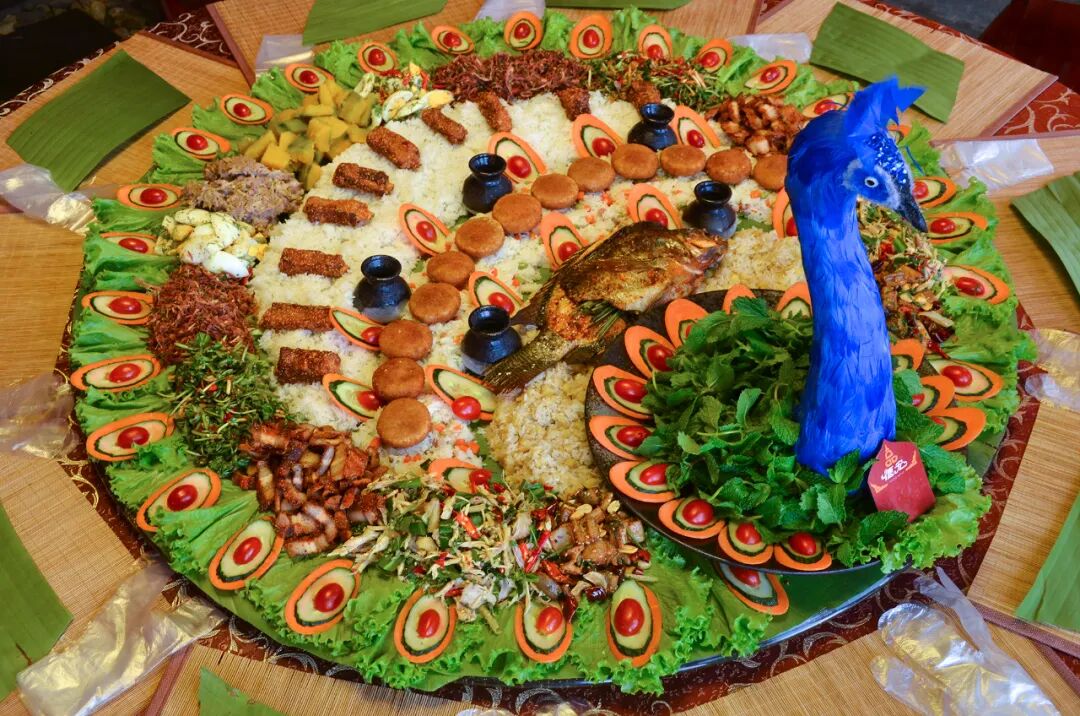 孔雀宴通常由21道独具德宏少数民族特色又不失现代感的小菜组合而成,凉热荤素、煎炒烹炸合理搭配,色香味形面面俱到。在这一桌孔雀宴之间,凸显了德宏的民族、地域文化,“品孔雀宴”也在不经意间成为人们到德宏的旅游体验项目之一。