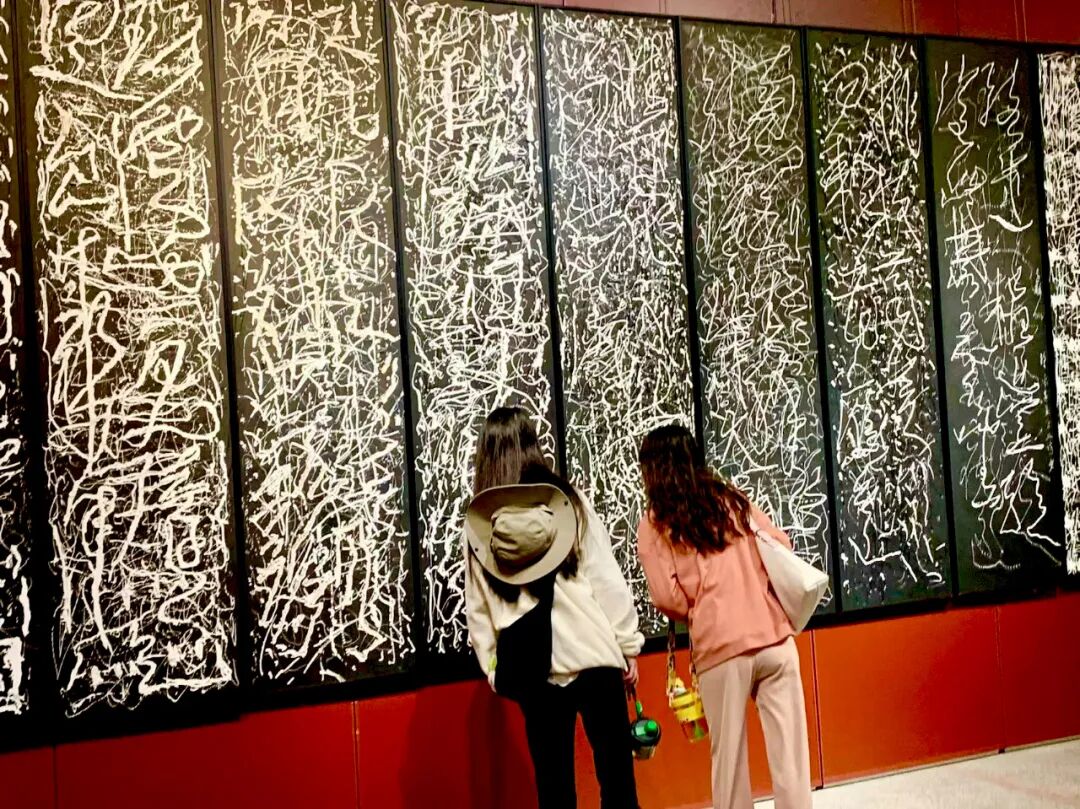 还没到上午十点半钟,来云南美术馆看展的市民和游客已络绎不绝地到来。一名来自北京的游客在一号展厅作品前驻足良久,他是一家私营企业的高管、也是业余美术爱好者。他说,2020年同样也是在这个馆里,他见证了“城市之上”的双年展,因为那次展览,上海、深圳和昆明有关美术学中的中国城市化形象早已映入他的脑海,使他和一些观展人一样,开始对现代城市与乡村、艺术与科技、人与自然等问题有了新的思考,不同的是,这次双年展与书法有关,让他更是受益匪浅。—群来自云南大学美术学院的学生对画展的规模和水平赞不绝口,100多件架上、装置和新媒体等多种类型的作品让他们喜出望外,这堂“书法与边界”的对话无疑是他们课外最生动的一课。