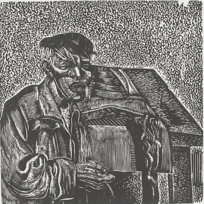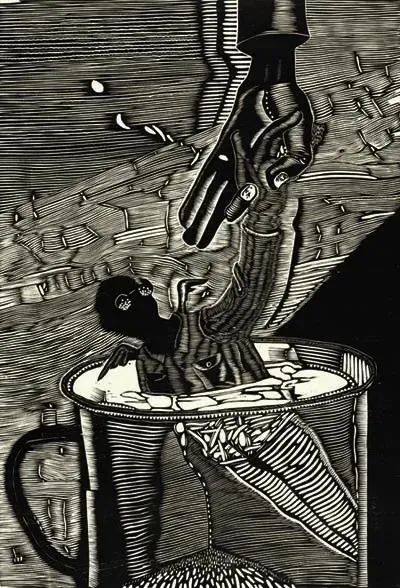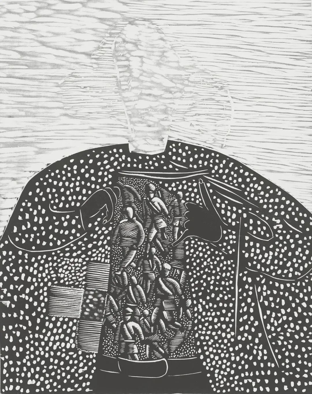 打开心扉 40.5x50.3cm 黑白木刻 1996