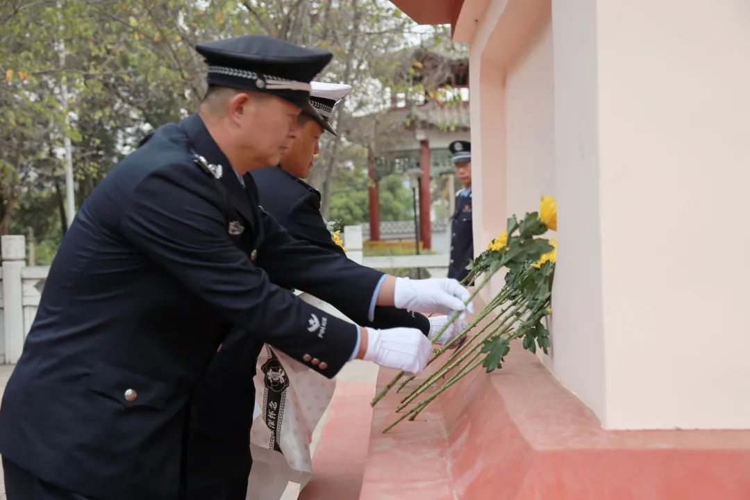 最后,全体民警一道缓步绕行,瞻仰烈士纪念碑,向革命烈士敬献鲜花,寄托对英烈的深切缅怀。