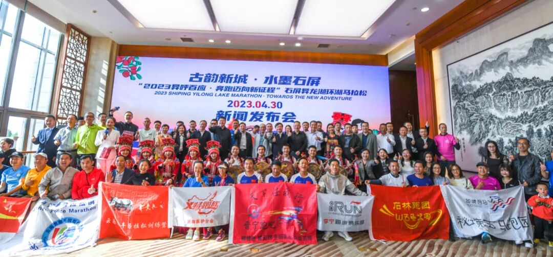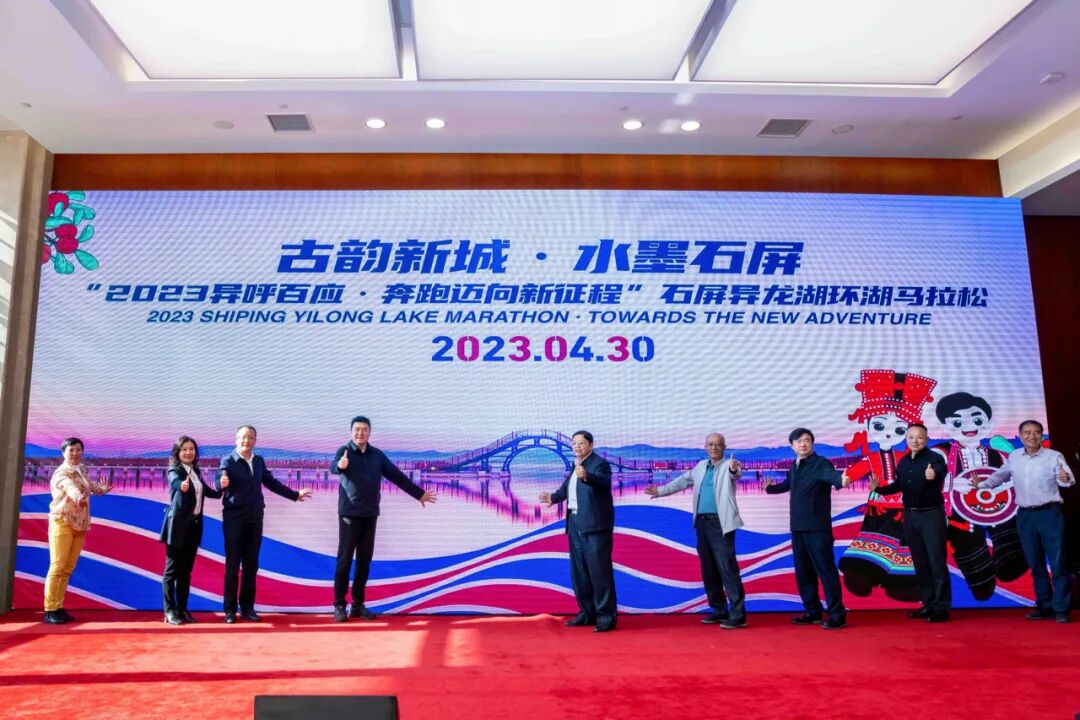 2023年3月31日,古韵新城·水墨石屏“异呼百应·奔跑迈向新征程”石屏异龙湖环湖马拉松在昆明市海埂会堂二楼品牌发布厅启幕。