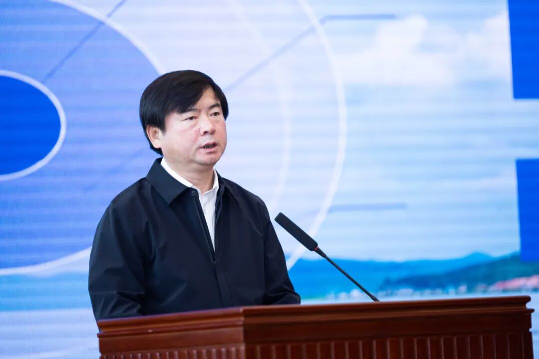 中共石屏县委书记张鹏程在新闻发布会上致辞。近年来,石屏县深入践行习近平生态文明思想,坚持以异龙湖保护治理为统领,强力推动绿色高质量发展,努力打通“绿水青山就是金山银山”转化通道。2020年1月1日,“异马当先·奔跑拥抱新时代”首届石屏异龙湖环湖马拉松鸣枪开跑,吸引了10个国家、100余个跑团、3500余名跑者,成功迈出了“体育产业+精品旅游+民族特色”深度融合发展的第一步。