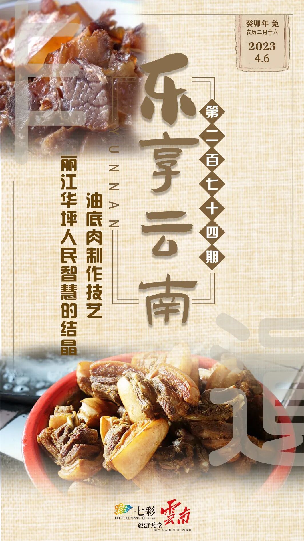 油底肉制作技艺流传于以丽江华坪为中心的金沙江干热河谷地区,是一种独特的肉食加工工艺。通常情况下,油底肉可保存一年之久,较好地解决了炎热气候环境下猪肉保存难的问题。2022年12月,华坪油底肉制作技艺被列入云南省第五批省级非物质文化遗产代表性项目名录。