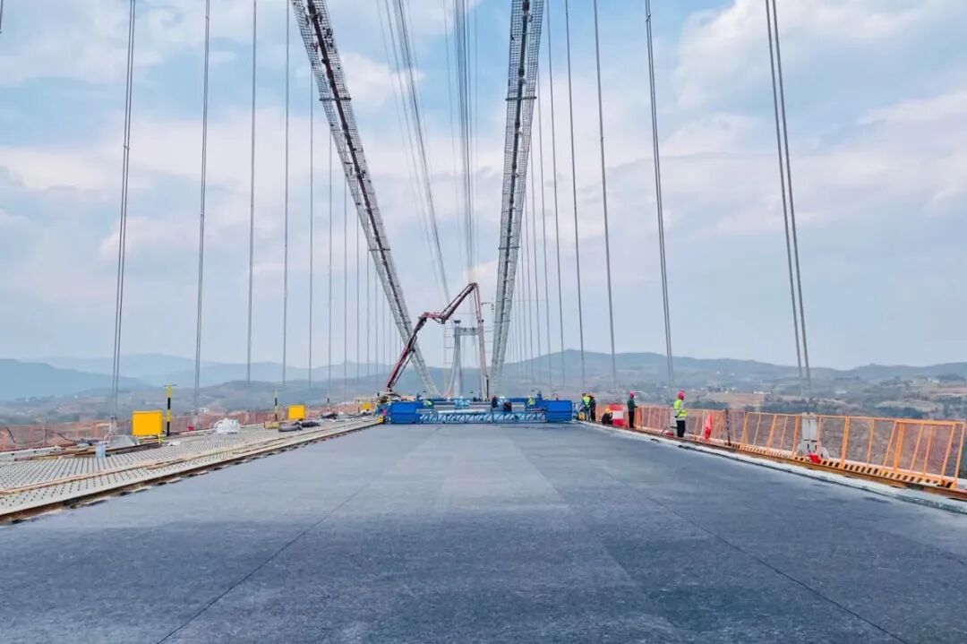 4月3日,永大高速控制性工程永仁大桥主桥UHPC桥面铺装完成。