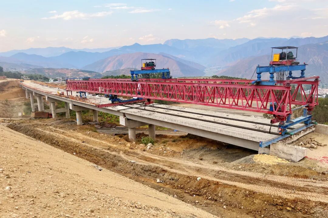 4月3日,漠沙互通C匝道桥最后一片预制箱梁架设完成,至此永金高速(戛元段)六分部全部桥梁架设完成。