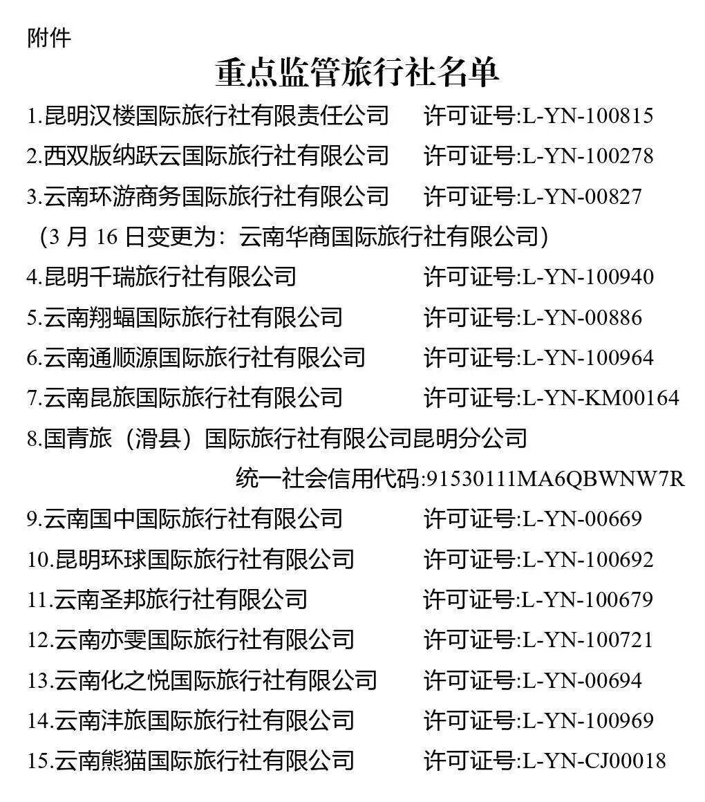 依托“一部手机游云南”等投诉受理平台数据,对每月投诉量排名靠前的旅行社进行约谈整改,并列入州市“黑榜”和全省重点监管名单。通过扶优惩劣,树立云南旅游好形象。各地文化和旅游部门须对重点监管名单所列旅行社进行约谈并列入州市红黑榜的“黑榜”进行重点监管。