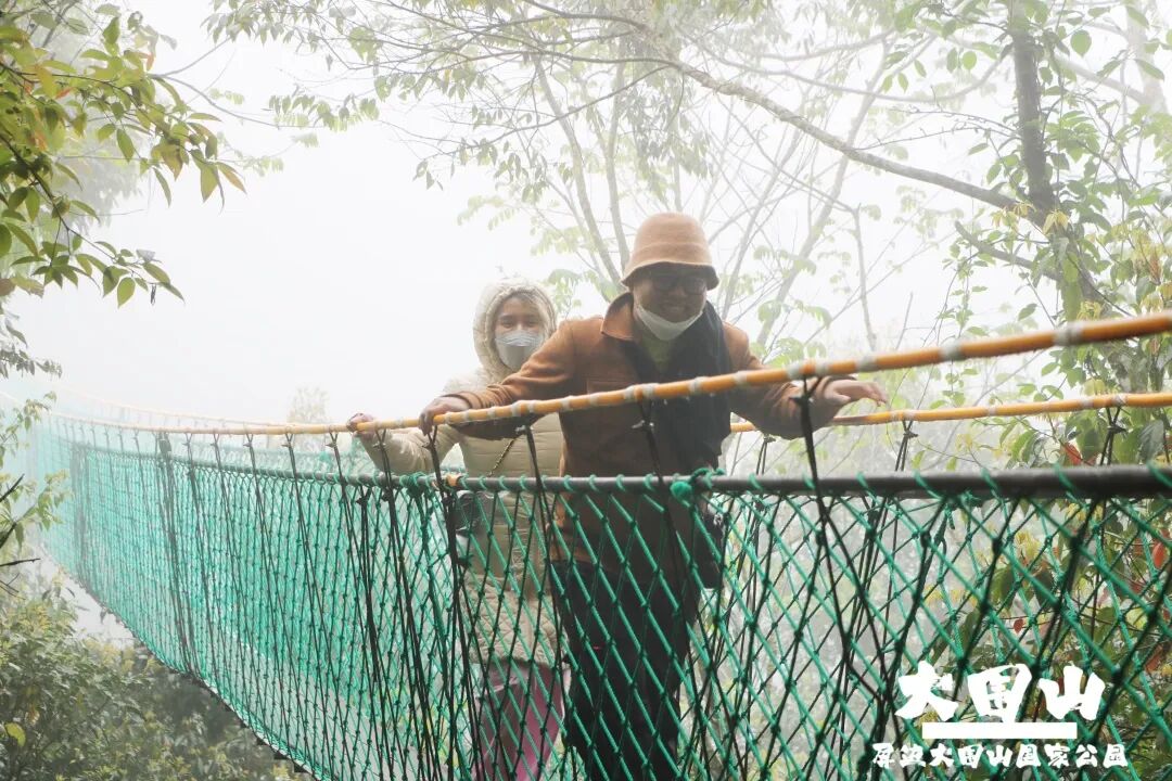 他们带着满满的激情登上青云亭、树楼,走过惊心动魄的吊桥,纵情山水间。