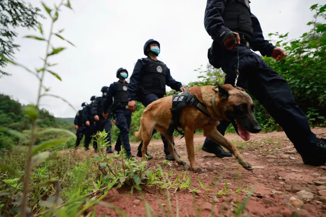 资料图 云南边检总站民警携警犬开展边境巡逻