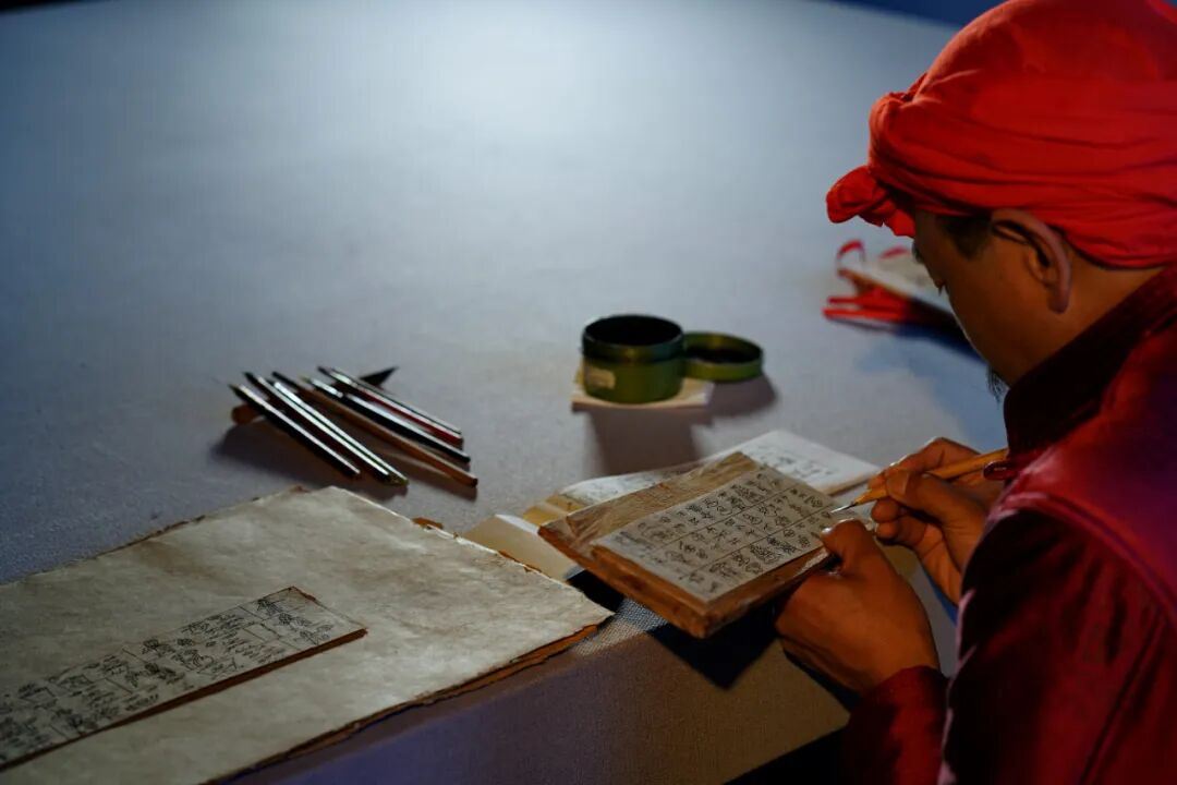 文创设计师也将东巴纸融入产品设计中,用东巴纸做成的笔记本、版画、明信片、书签等特色旅游纪念品深受游客欢迎。