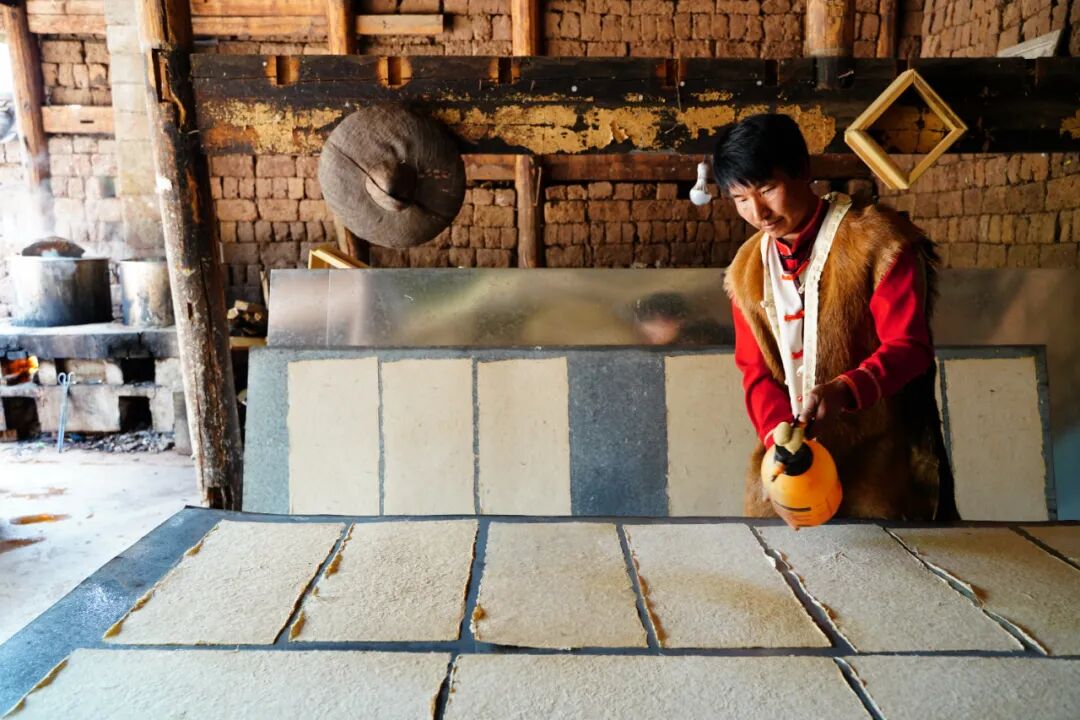 在腾冲市界头镇,至今仍然沿用古法造纸,当地人称为“手工抄纸”,腾冲手工抄纸技艺是一项历史悠久的民间传统技艺,至今已传承千年。2022年12月,腾冲手工抄纸技艺被列入云南省第五批省级非物质文化遗产代表性项目名录。