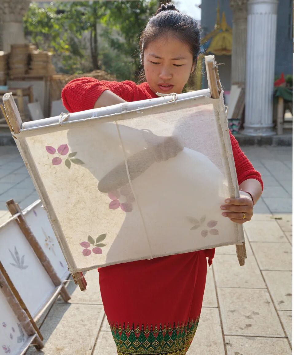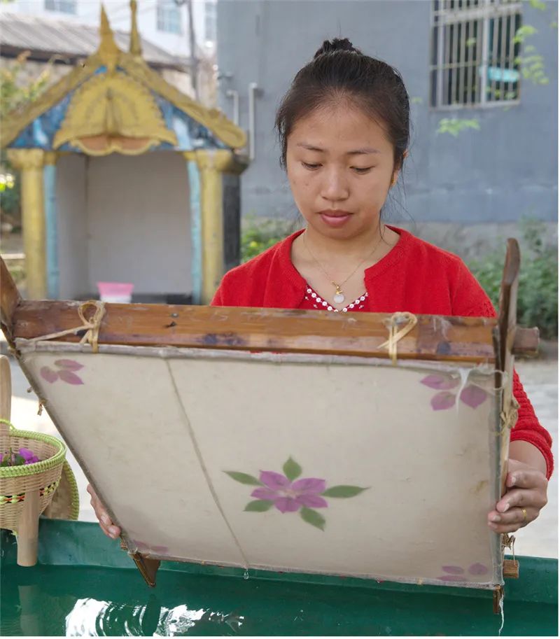 西双版纳傣族传统手工造纸蕴含着匠人们独特的创意和巧思,随着时代的变更,傣纸与多种现代审美元素相融合,由最初抄写经文、发布告示等简单作用的纸张,逐渐成为油纸伞、灯笼、书写、绘画、雕刻、普洱茶包装、相框和相册等与生产生活相关的产品。