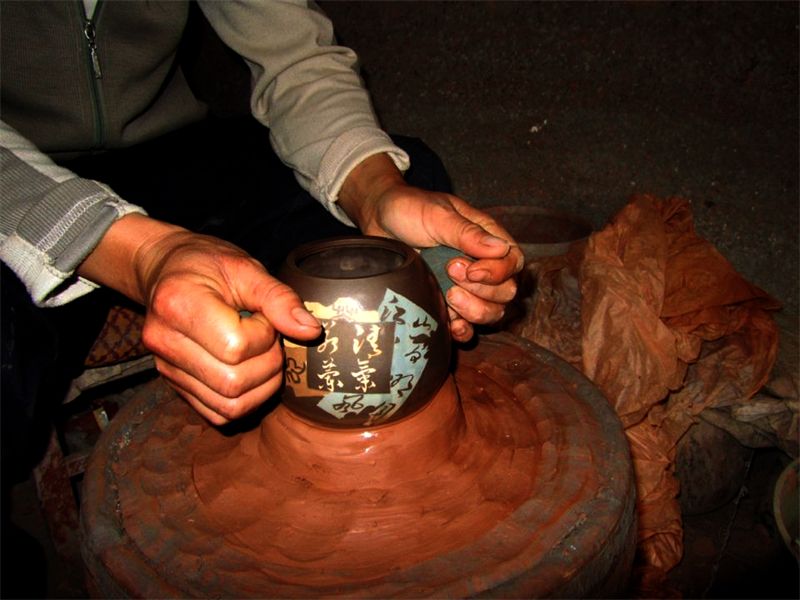 建水紫陶,汉族传统手工艺品,以“手工拉坯、名家书画、阴刻阳填、无釉磨光”而著称。它集天地之精华,融诗、书、画和“残帖”“淡艳”艺术于一体,浓缩名川大山之气魄,花鸟虫鱼之神韵,匠心独运,巧夺天工,散发着神秘的魅力,是中国传统工艺美术宝库中的一朵奇葩异卉。