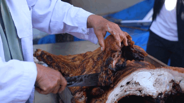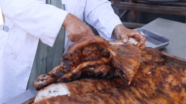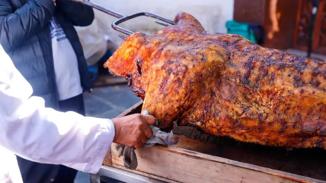 河图大烧,即火烧全猪,是保山宴席上必不可少的名菜,甚至在很多地方被安排成宴席中的“压轴”大菜出场。在保山人心中,那一口嗞嗞冒油、咔嚓作响的河图大烧 ,便是凝结在味蕾中的乡愁。