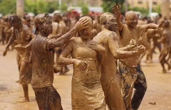摸小伙儿、摸孩童、摸朋友、也摸远方来的客人。此时此刻,谁黑谁最美;谁泥巴多谁的快乐多。“黑你”就是祝福你!