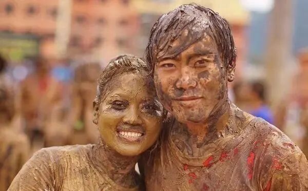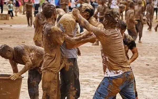 参加狂欢节的人们无论男女很快就抹成一团,相互涂抹,彼此祝福。