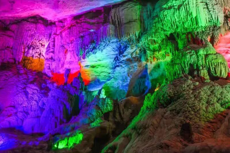 此时的凤凰谷,到处弥漫着春天的气息。穿越两侧的峡谷进入1.6公里的溶洞,造型各异的钟乳石在灯光的映衬下穿上了五色彩衣,星光熠熠,美轮美奂,令人流连忘返。