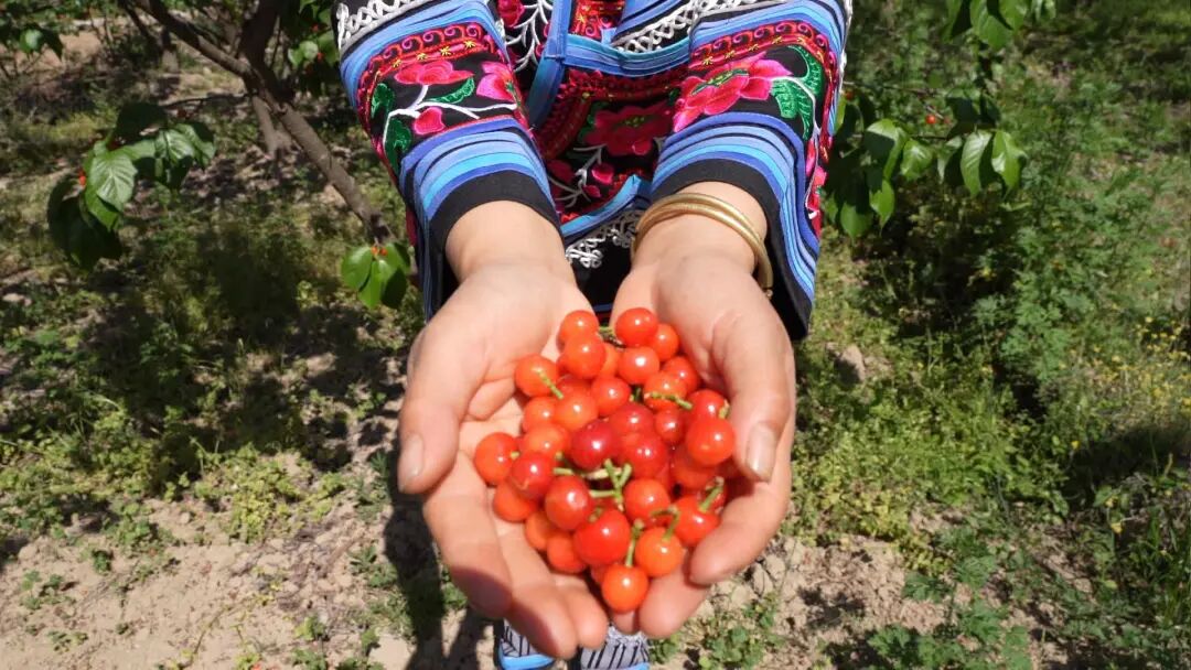 虽说樱桃不独落水洞有,但这里的樱桃独具特色。如果将北方樱桃比作“女汉子”,那么落水洞的樱桃便是“小家碧玉”,藏于肥绿树叶间、缀满枝头的樱桃玲珑如珍珠,色泽晶莹透红,果皮光滑薄透,果肉细嫩多汁,1500米的海拔和一年长达2836小时的阳光成就了落水洞樱桃独特的甜,吃一口,是舌尖上难以忘怀的乡愁。古有皇家宴会上“昔作园中实,今来席上珍”的不吝赞誉,今有品尝落水洞樱桃后“若呡一枚落水红,人间再无樱桃味”的由衷感慨,仿佛春天的韵味都在其中了。