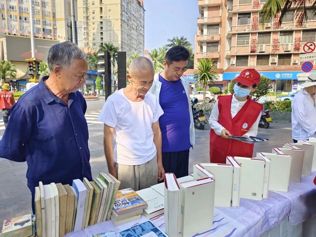当日,景洪市图书馆联合西双版纳州新华书店在孔雀湖广场通过设立咨询台、悬挂宣传横幅、设立宣传展板、发放宣传资料、办理借阅证等方式,向过往群众进行阅读宣传。现场以大型历史文献丛书《复兴文库》为主,本地文献、法治书籍为辅展出特色图书200余册。此外,现场开展的“您阅读 我买单”活动,让办理市图书馆借阅证的市民,凭借阅证便可以到新华书店挑选喜欢的图书免费把书带回家阅读。