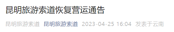 昆明旅游索道客厢升级更新工作已顺利完成,预计2023年4月26日(14:00以后)恢复正常营业,请广大游客朋友相互告知为谢,祝您旅途愉快!
