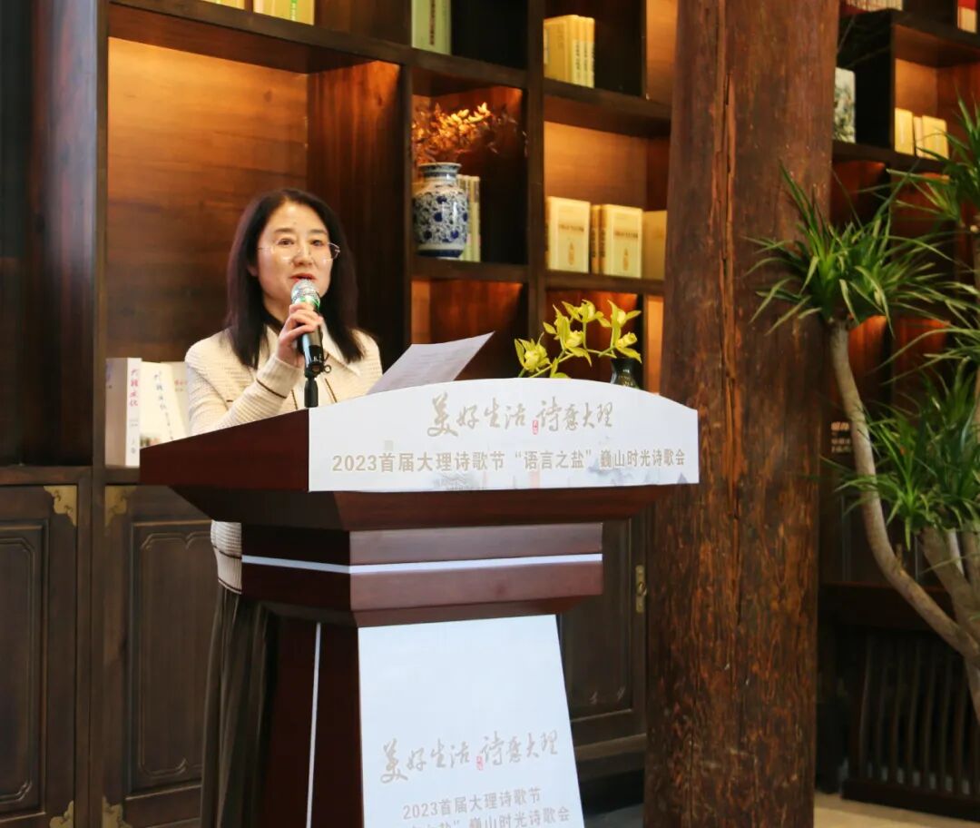 著名诗人海男、李智红、巍山青年作家疏雨女士分别作了主题发言;巍山文学艺术界的老师和小朋友分别朗诵了诗歌《在时光之城,吟颂一朵菊花》《众河之神》(节选)及《巍山》,朗读者们用荡气回肠的诵读声将源远流长的历史文化底蕴表达得淋漓尽致,赢得了现场观众热烈的掌声。