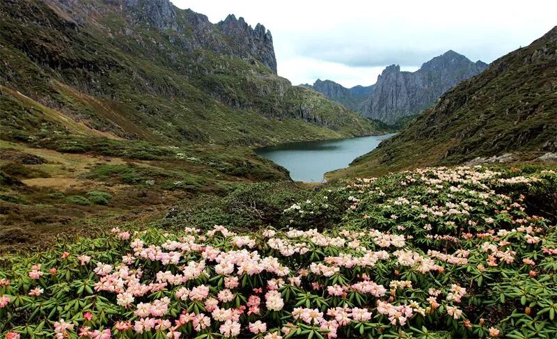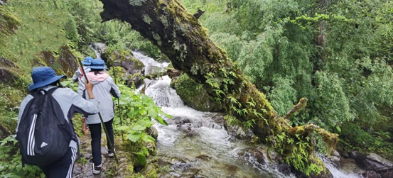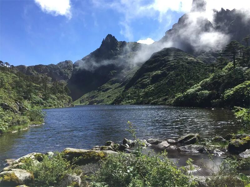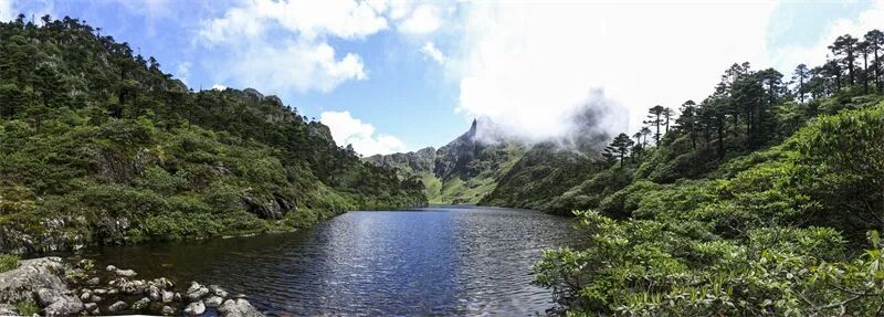 从福贡县匹河怒族乡老姆登村出发,行车10多公里,再徒步10多公里,吹着温润凉风,听着潺潺流水声,踏着曲曲折折的石阶,穿过清幽的竹林、云雾下的万亩林海、层层杜鹃花丛,历时7个多小时,便可奔进七莲湖的怀抱中。