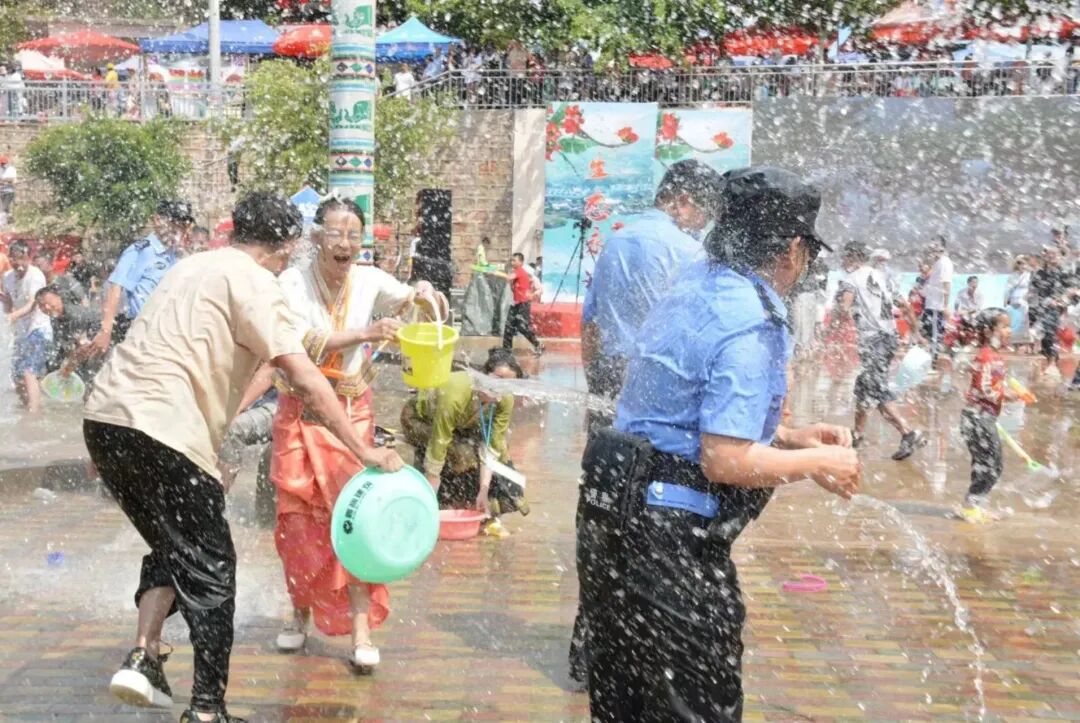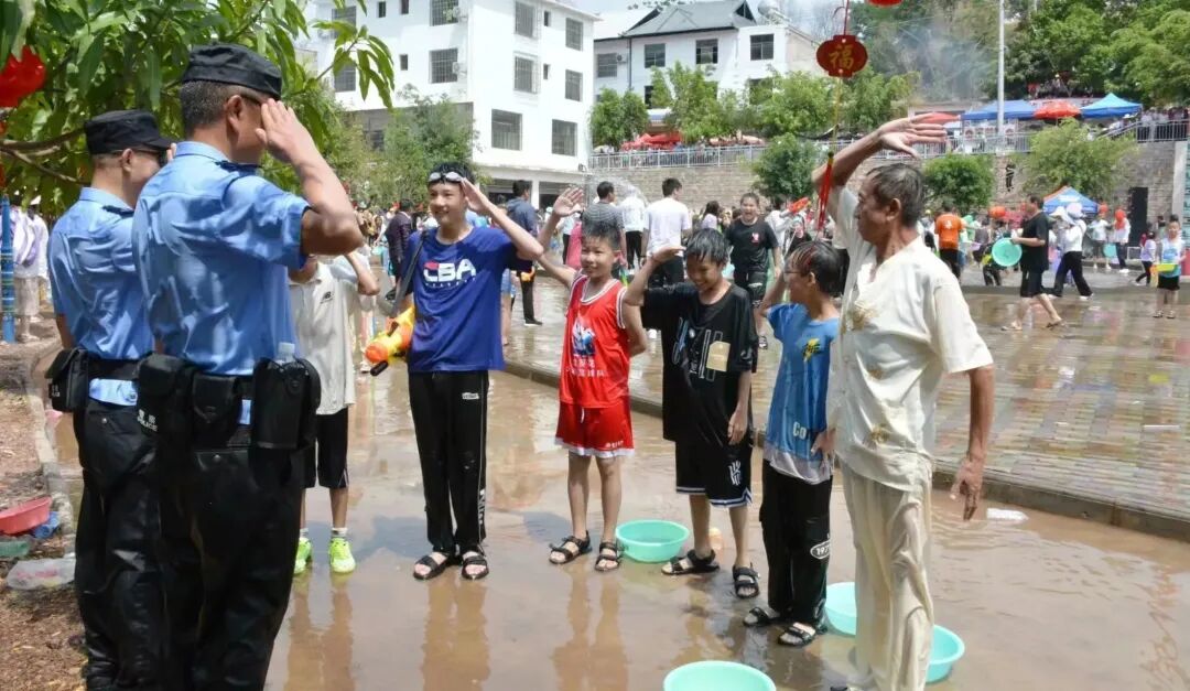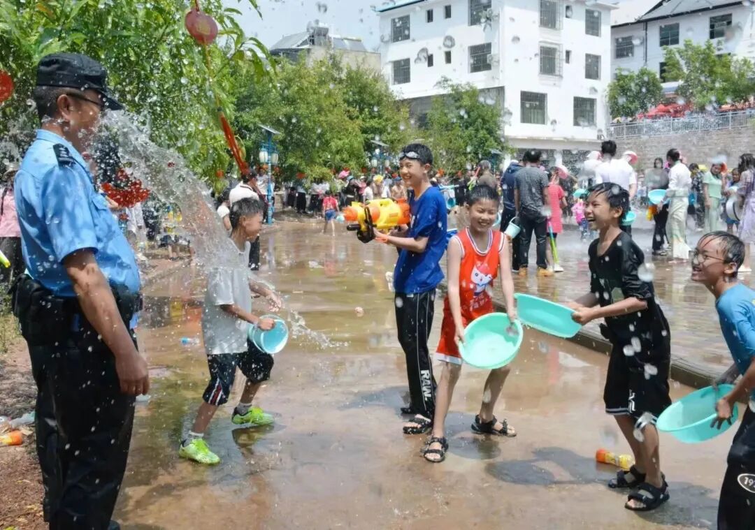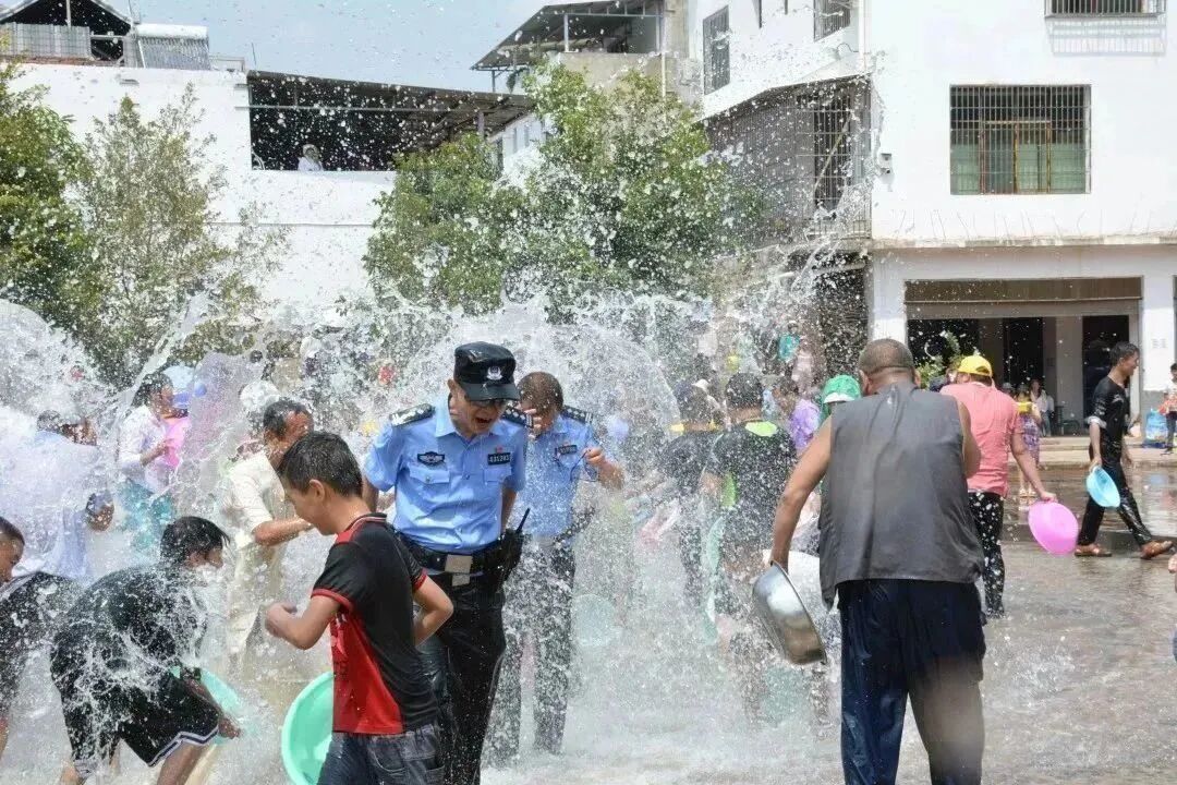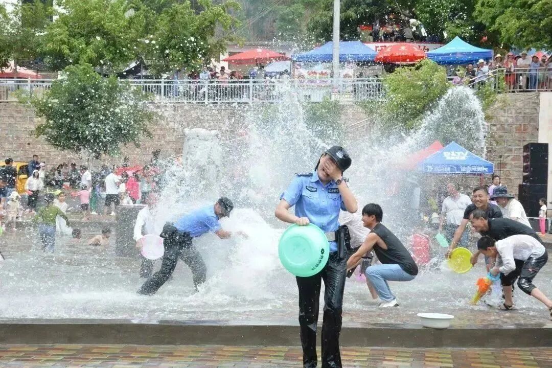 警民共同泼水狂欢,其乐融融